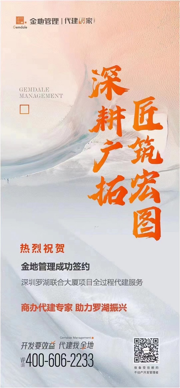 据悉,金地管理是金地集团创立的专属经营代建业务的品牌,总部位于深圳,专注于为全国范围客户提供全过程房地产开发管理服务,开展商业代建、政府代建、资本代建三大代建业务,提供项目管理和顾问咨询等多元服务。